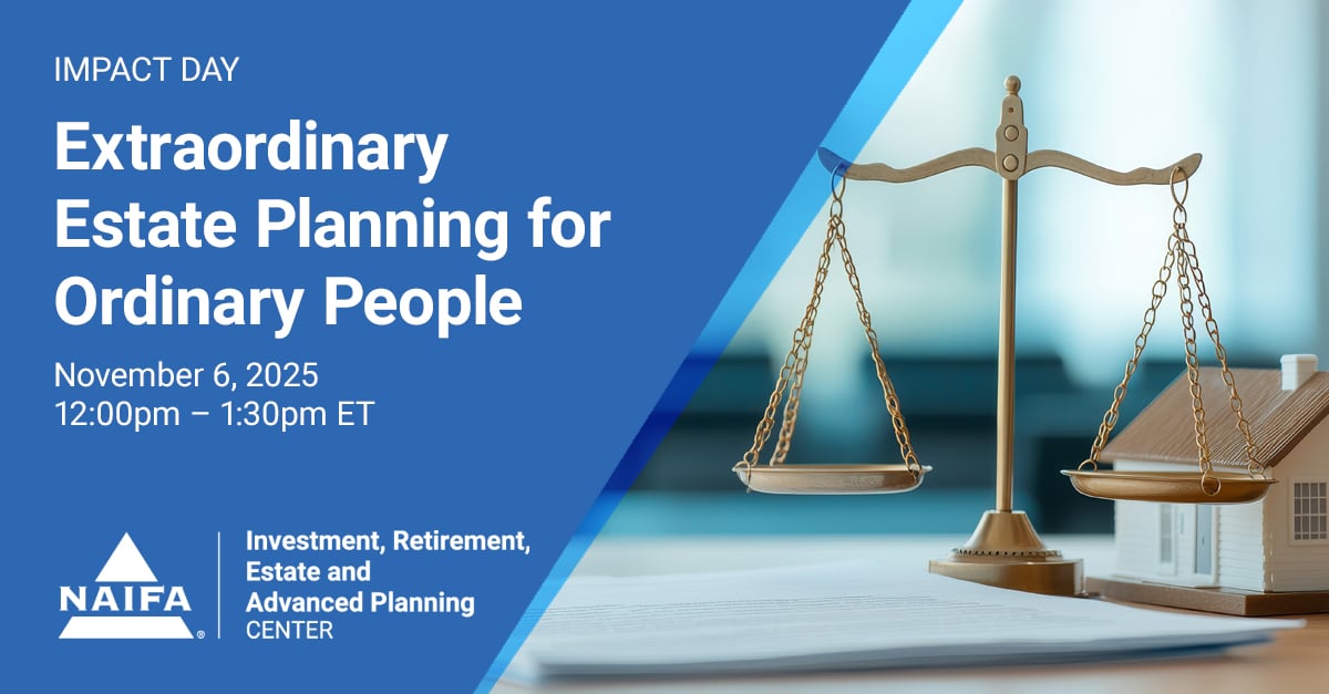 NAIFA’s Investment, Retirement, Estate, and Advanced Planning Center (IREAP) hosted its first Impact Day webinar on Thursday, November 6, 2025, "Extraordinary Estate Planning for Ordinary People", which aimed to demystify the estate planning process and highlight its critical importance for everyone, regardless of age or asset level. Moderated by Mat Powers, the discussion featured experts Troy Branch and Andrew Rinn, who emphasized that planning is fundamentally about family and legacy, not just dollars and cents.